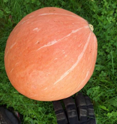 Ich tausche hier ein Tütchen mit 10 Samen des abgebildeten Kürbis. Die Samen habe ich 2025 von einem 2024 angebauten Kürbis genommen.