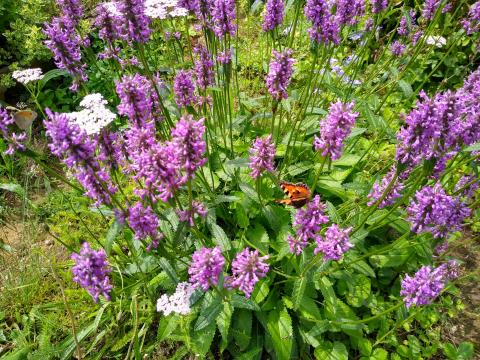 Die echte Betonie oder Heilziest (Betonica officinalis)ist für Wildbienen und Hummeln der Renner.Die absolut winterharte Staude erfreut durch ein kräftiges Lila im Staudenbeet.