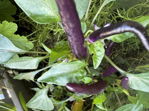 Früchte färben sich über orange, pink, lila und rot. Alle Früchte stehen straff nach oben.