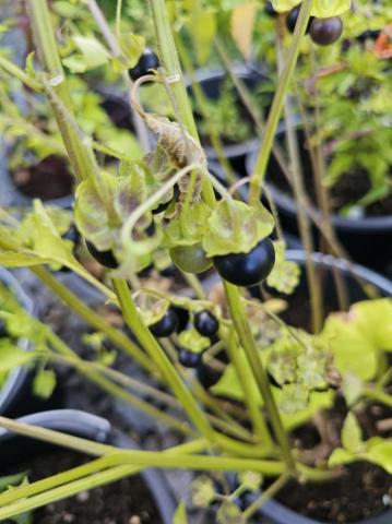 Ein seltenes, buschig wachsendes Nachtschattengewächs mit dunkellia-schwarzen Früchten. Die Beeren schmecken süßlich und erinnern an Mandelgeschmack. Man kann sie direkt vom Strauch naschen, oder auch als Chutney oder Marmelade verarbeiten.