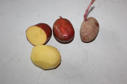 - bei Pellkartoffeln färbt die rote Schale auf das Fruchfleisch