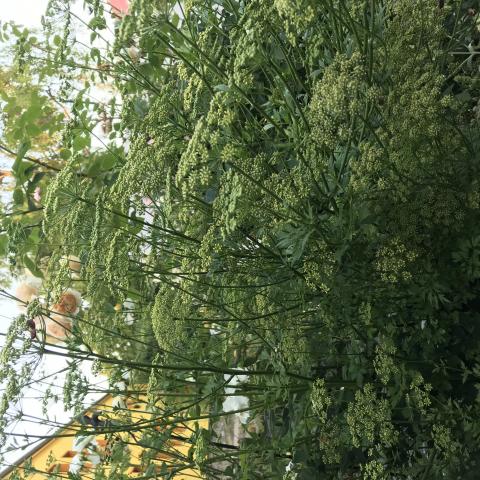 Die Petersilie fühlt sich zwischen meinen Rosen richtig wohl.