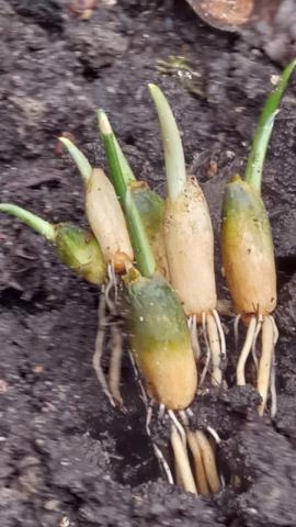 Bärlauch ist ausdauerndes Zwiebelgewächs und wird 20 bis 50 Zentimeter hoch. Aus seiner sehr schlanken, etwa vier Zentimeter langen Zwiebel wachsen meist zwei bis vier dunkelgrüne, gestielte Blätter. Etwas später treibt aus der Ziebel auch der aufrechte Stiel, auf dem der weiße Blütenstand erscheint. Die Stiele vom Bärlauch sind fast dreieckig. Fühlt er sich an seinem Standort wohl, bildet Bärlauch durch Selbstaussaat und Brutzwiebeln oft große Bestände.