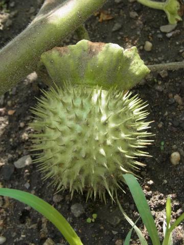 An einem sonnigen, warmen, nährstoffreichen Standort entwickelt sich eine bis zu 1 Meter hohe und breite impossante Pflanze mit strahlend weißen Trichterblüten und später stacheligen Fruchtkapseln.