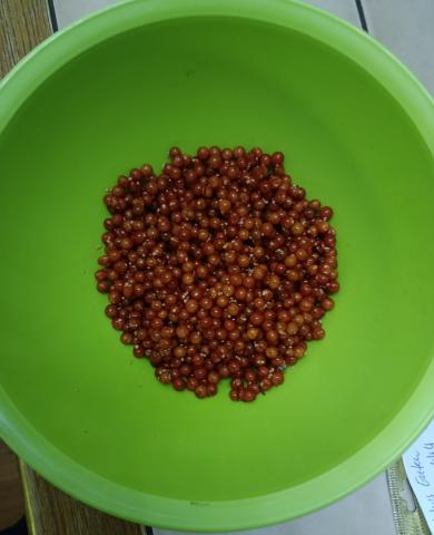 Haben die Beeren mit 1:1 Gelierzucker zu Marmelade gemacht.Die Menge in der Schüssel sind 3 Gläser a 200 ml geworden. Lecker.