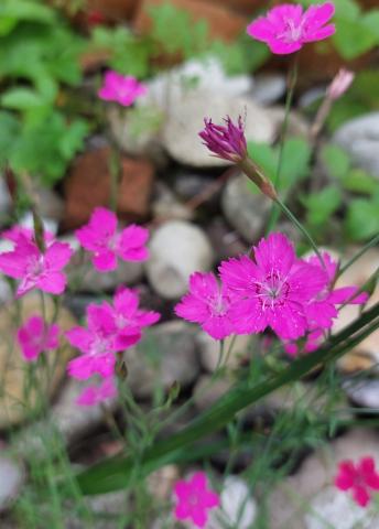 Wunderschöne kleine Nelkenart die üppig in rot/lila Tönen blüht und pflegleicht ist und sich über die Jahre durch Samen auch langsam weiterverbreitet.
