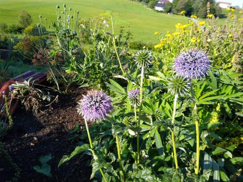 Zu den unangefochtenen Schmetterlings- und Bienenmagneten gehört die winterharte und mehrjährige Kugeldistel.