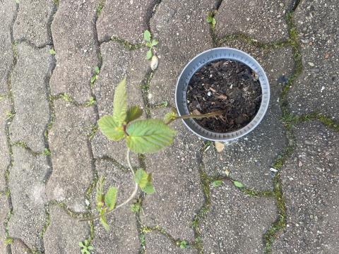 Der hier abgebildete bewurzelte Ablegern meiner riesigen Korkenzieherhasel steht zum Tausch an. (Ohne Topf)