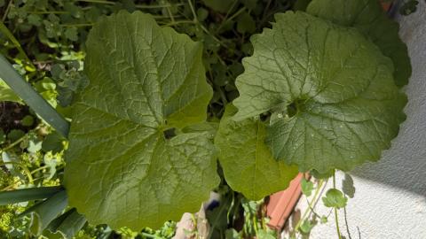 Knoblauchsrauke ist eine der frühesten Wildkräuter, bereits im März erntereif. Die ganze Pflanze ist essbar, immer frisch verwenden. Sie schmeckt leicht nach Knoblauch und Pfeffer, perfekt für den ersten Wildkräutersalat, Suppen oder Soßen im Frühjahr. Ich esse frühe Wildkräuter sehr gerne mit meinem Wintersalat. Alle Wildkräuter schneide ich sehr klein, wie Schnittlauch oder Petersilie. Knoblauchsrauke wächst bei mir im lichten Schatten unter Obstbäumen und Beerensträuchern. Jungpflanzen, die irgenwo aufgehen wo sie nicht hinpassen werden einfach geerntet.